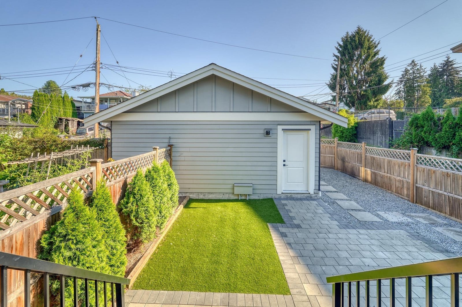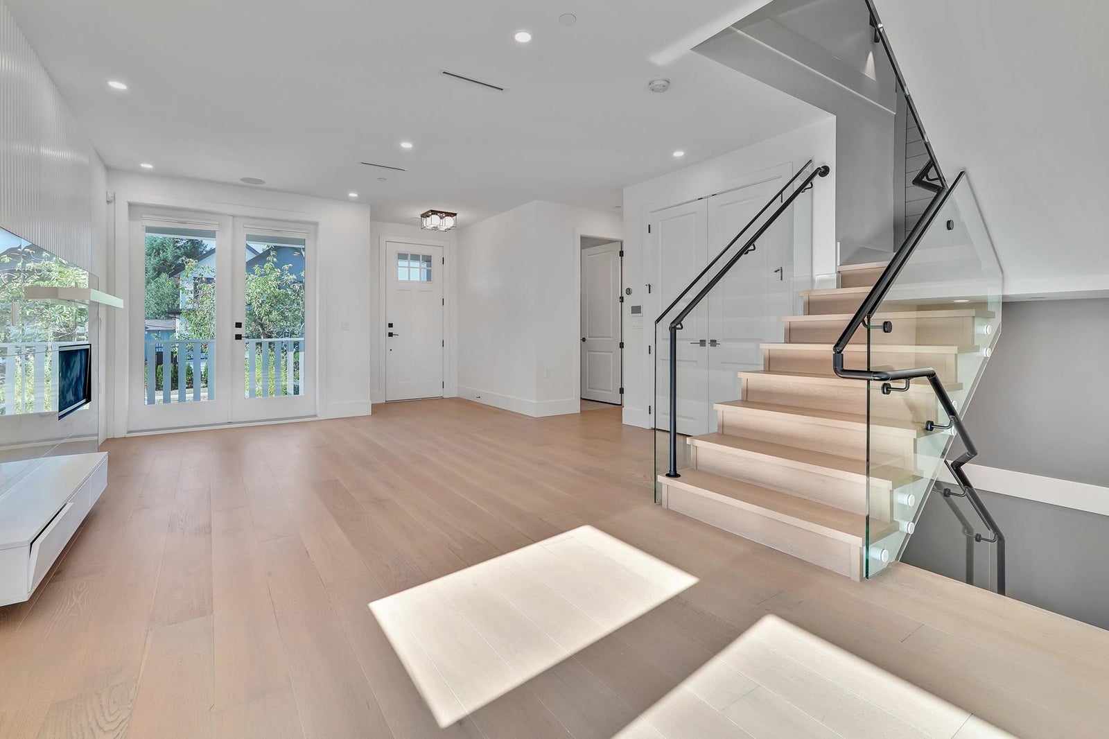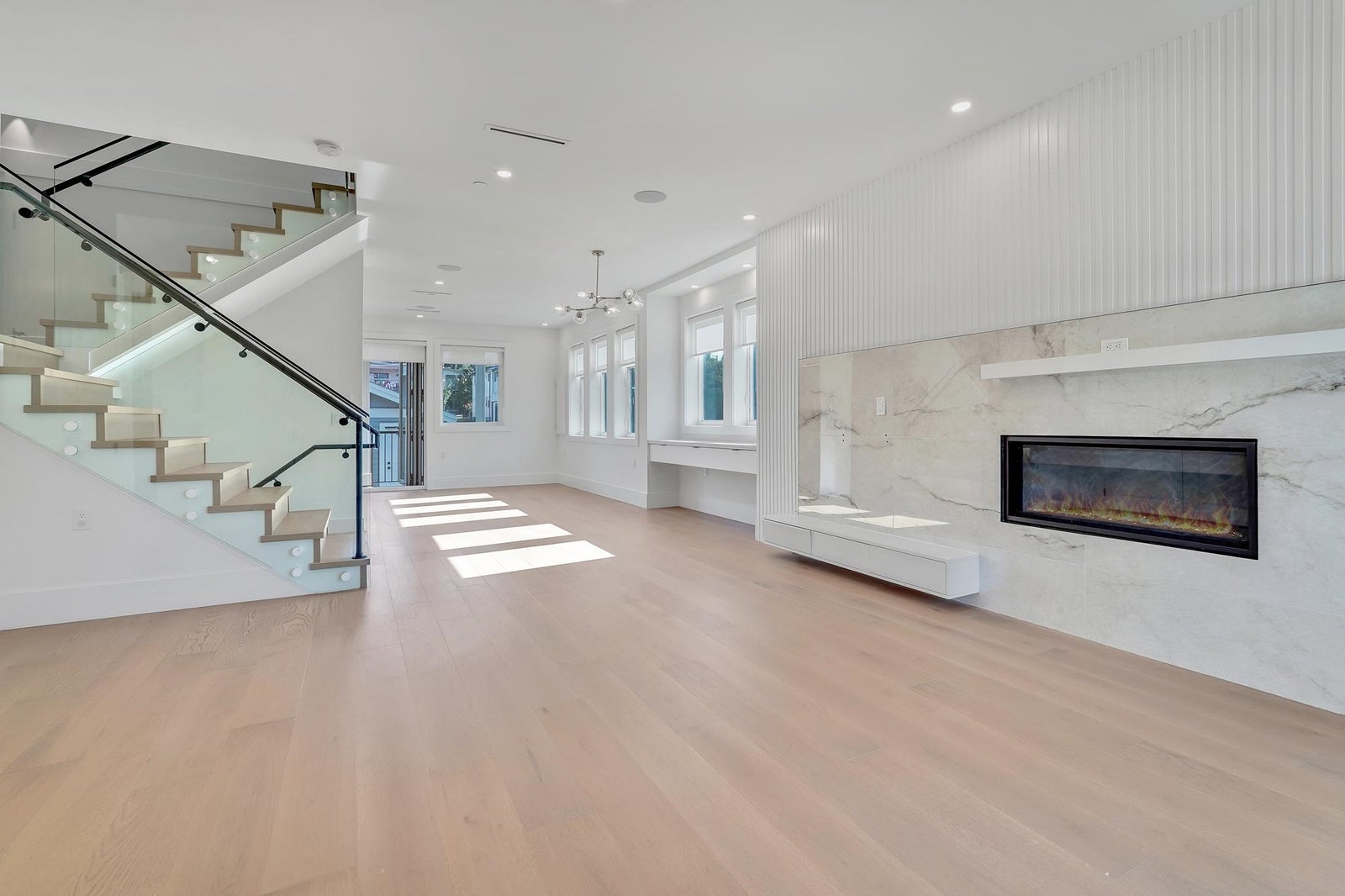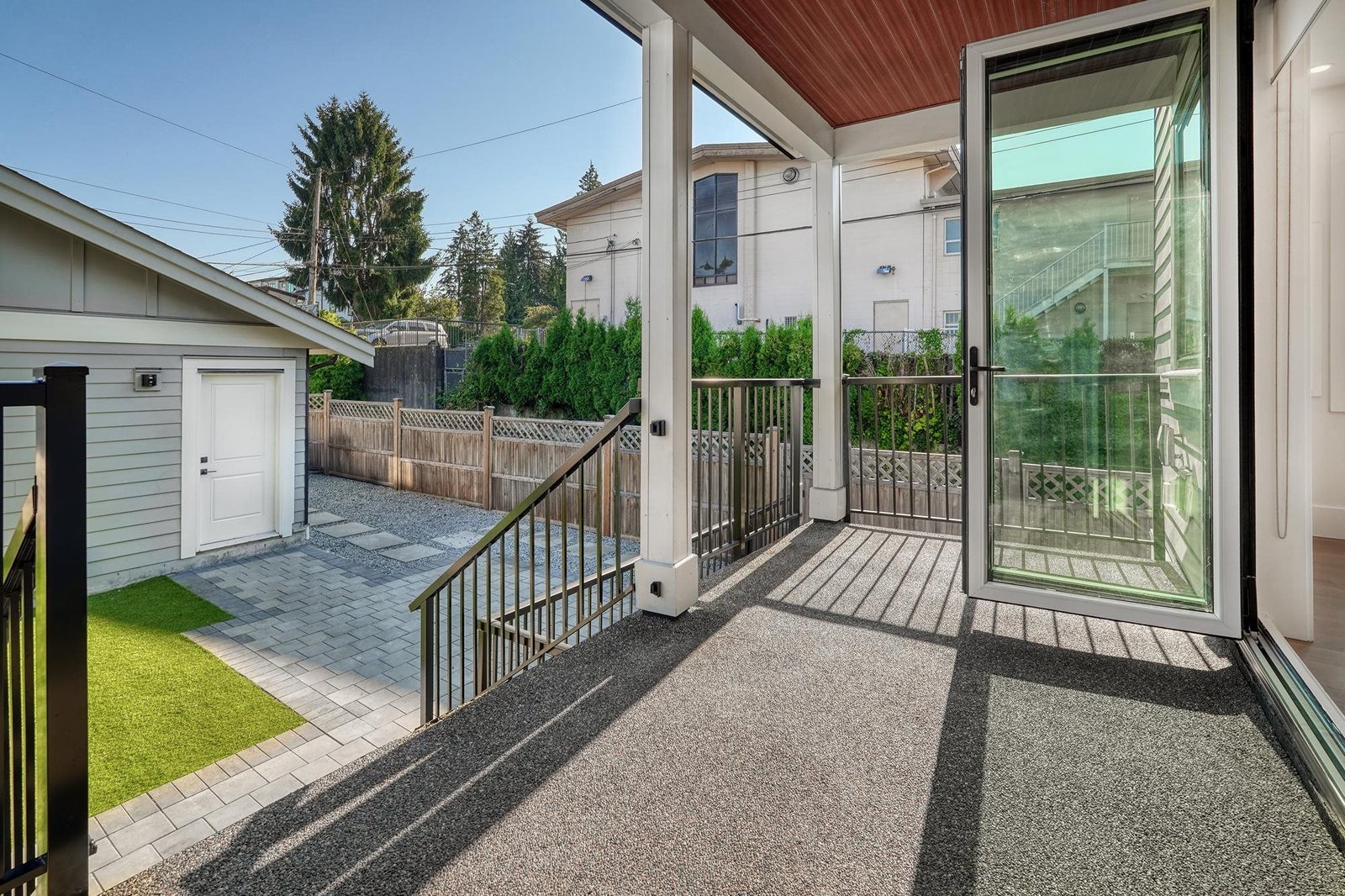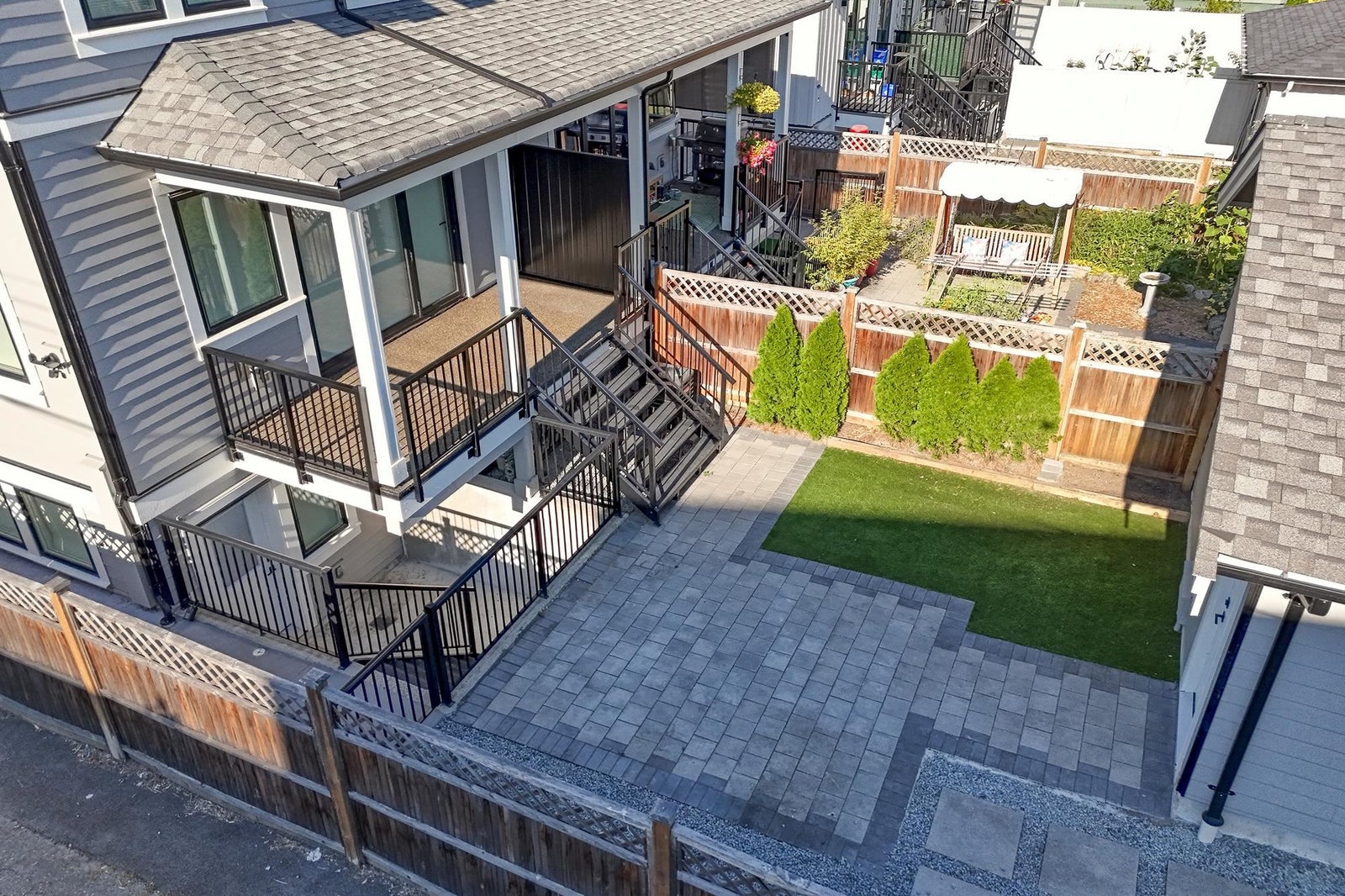 Stunning 1/2 duplex featuring a 1-bedroom legal suite! The main level showcases a open-concept design with a modern kitchen, island, gas range, Miele appliances, and bonus storage. Nano doors extend your living space to a private, covered patio. Expansive windows flood the home with natural light. Upstairs offers 3 bright bedrooms with vaulted ceilings, including a primary with walk-in closet and spa-inspired ensuite. The lower level includes a full suite and a huge crawl space over 600SF for all your storage needs. Enjoy year-round comfort with A/C, HRV, smart home tech, alarm system, and a detached single garage with EV charger. Located in a welcoming neighborhood just minutes from shopping and the heart of Vancouver. Balance of 2-5-10 warranty.