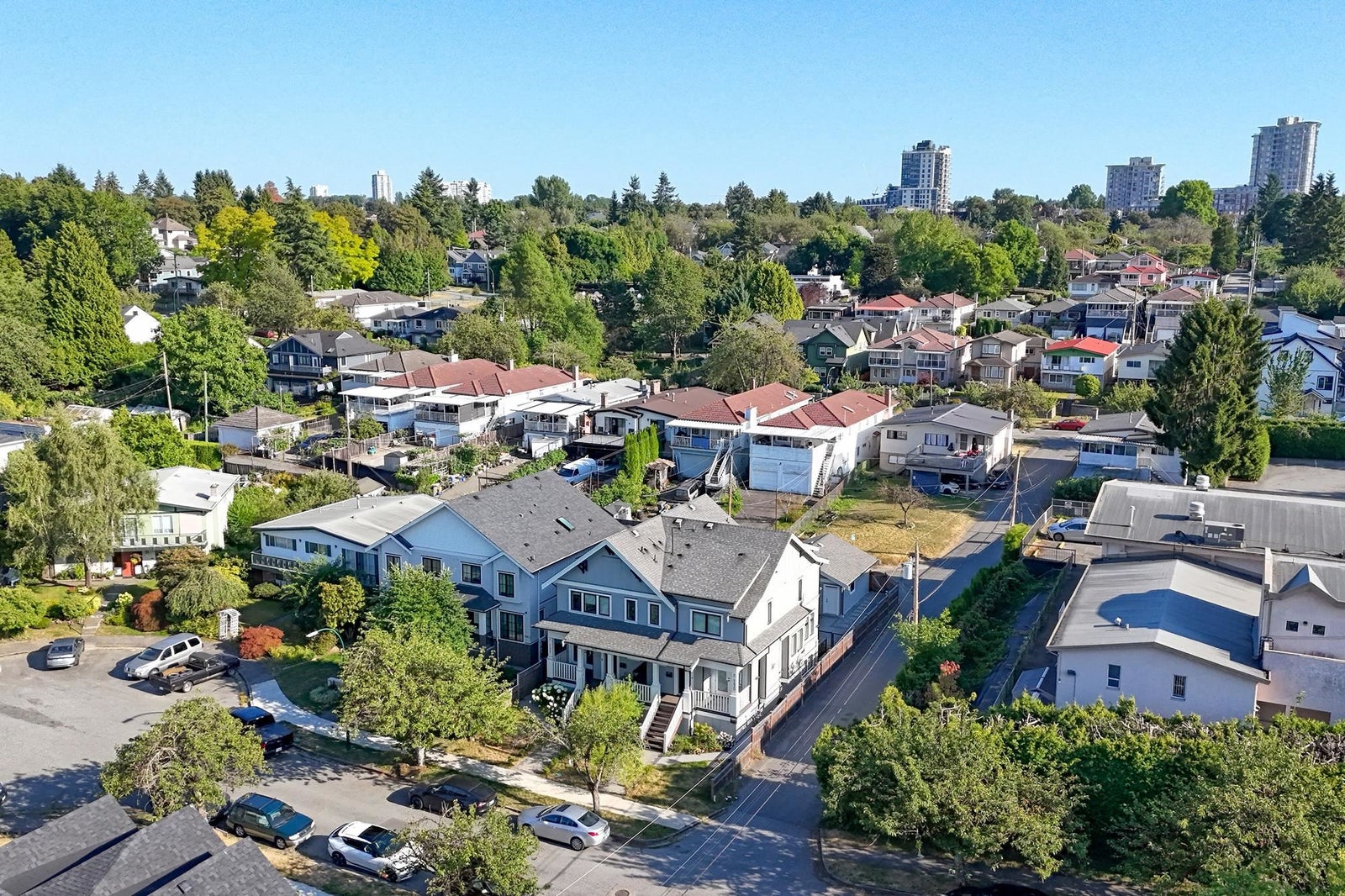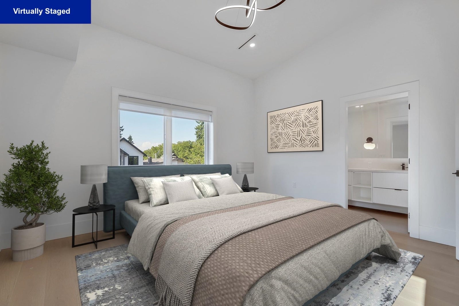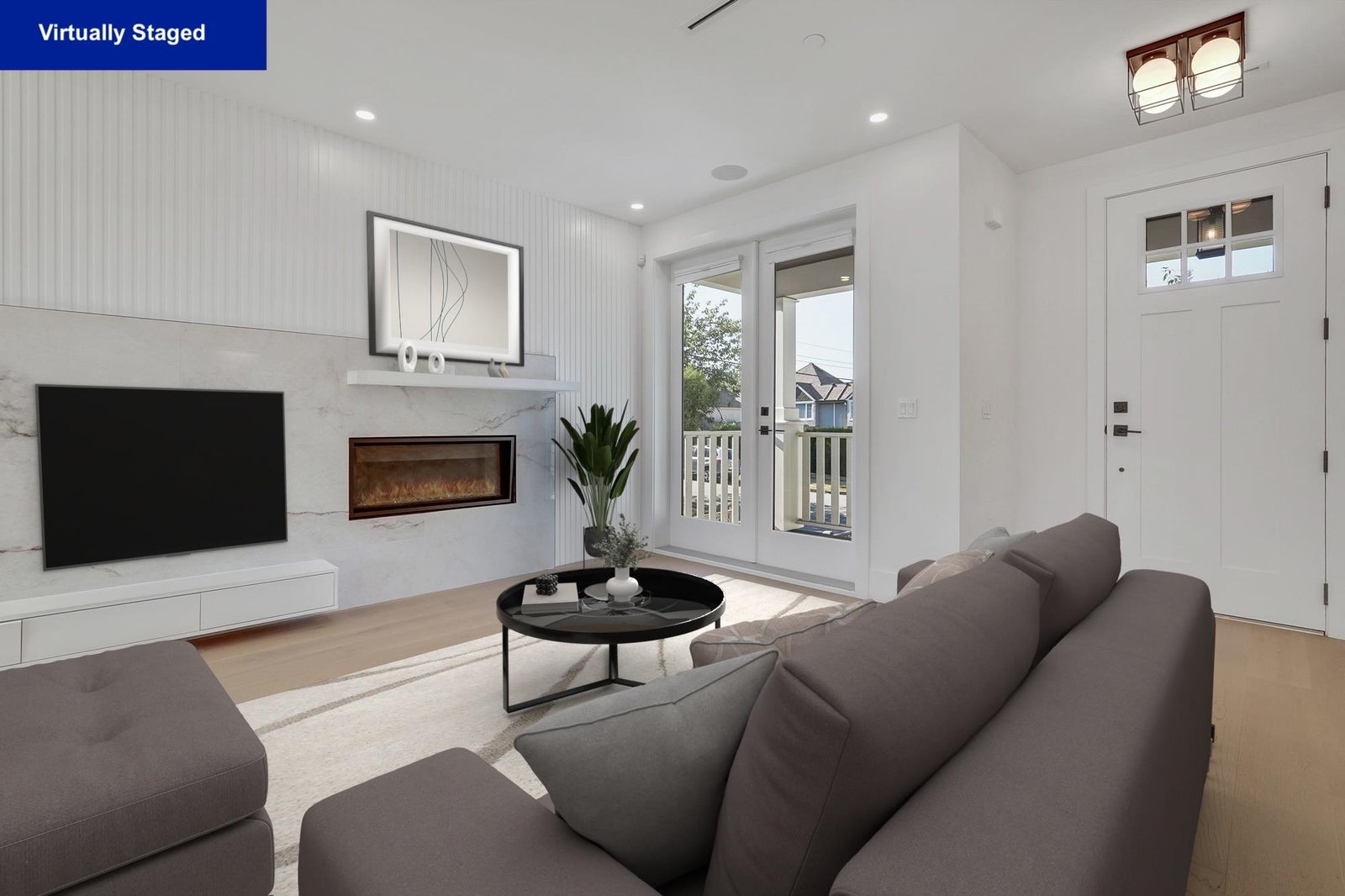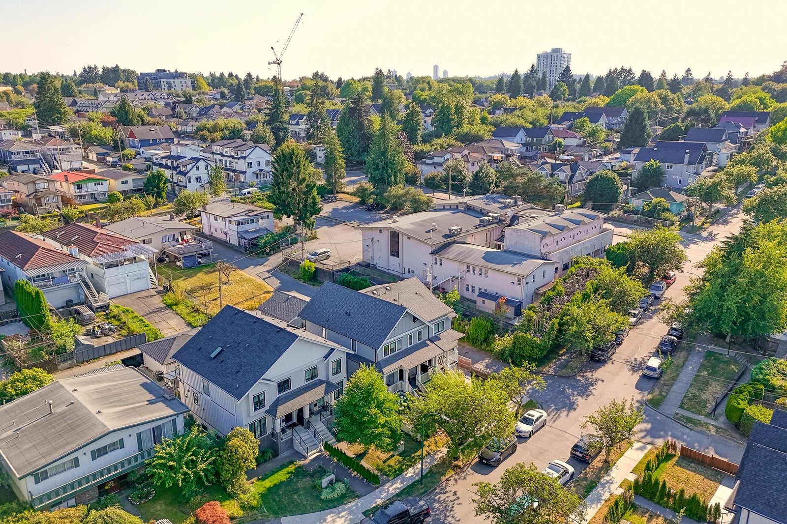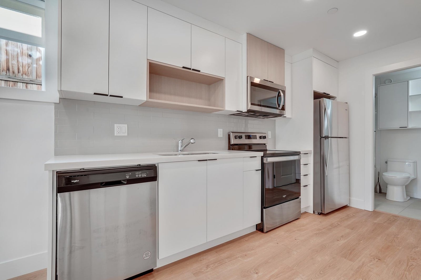 Stunning 1/2 duplex featuring a 1-bedroom legal suite! The main level showcases a open-concept design with a modern kitchen, island, gas range, Miele appliances, and bonus storage. Nano doors extend your living space to a private, covered patio. Expansive windows flood the home with natural light. Upstairs offers 3 bright bedrooms with vaulted ceilings, including a primary with walk-in closet and spa-inspired ensuite. The lower level includes a full suite and a huge crawl space over 600SF for all your storage needs. Enjoy year-round comfort with A/C, HRV, smart home tech, alarm system, and a detached single garage with EV charger. Located in a welcoming neighborhood just minutes from shopping and the heart of Vancouver. Balance of 2-5-10 warranty.