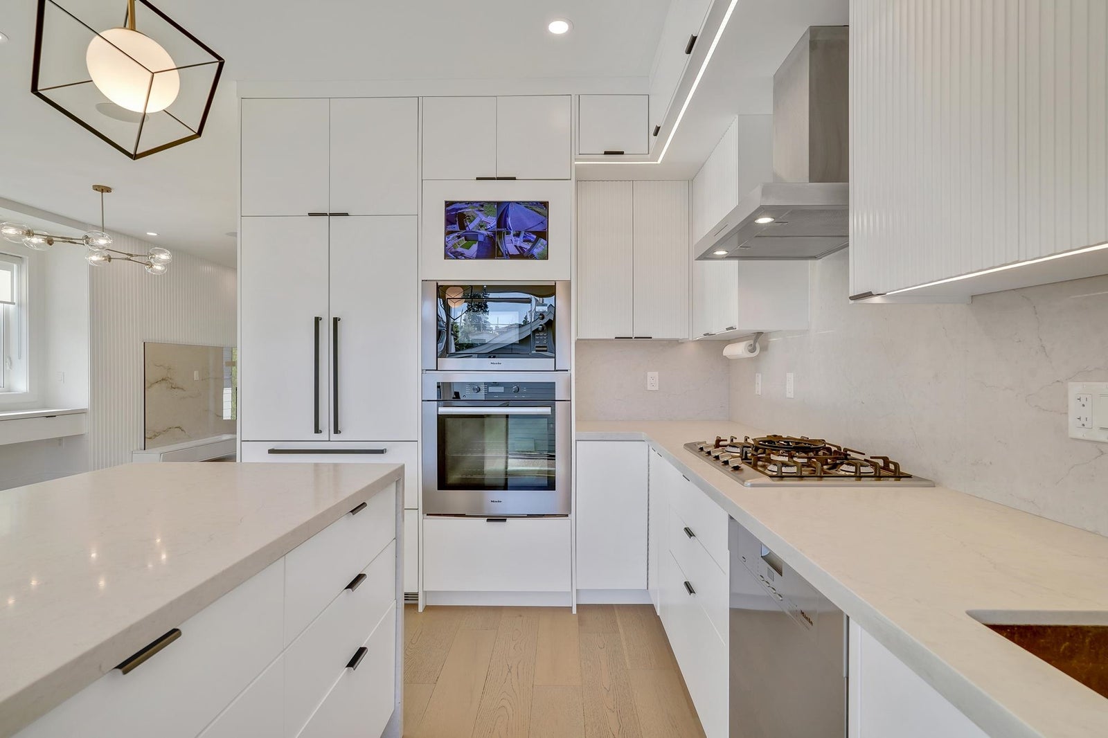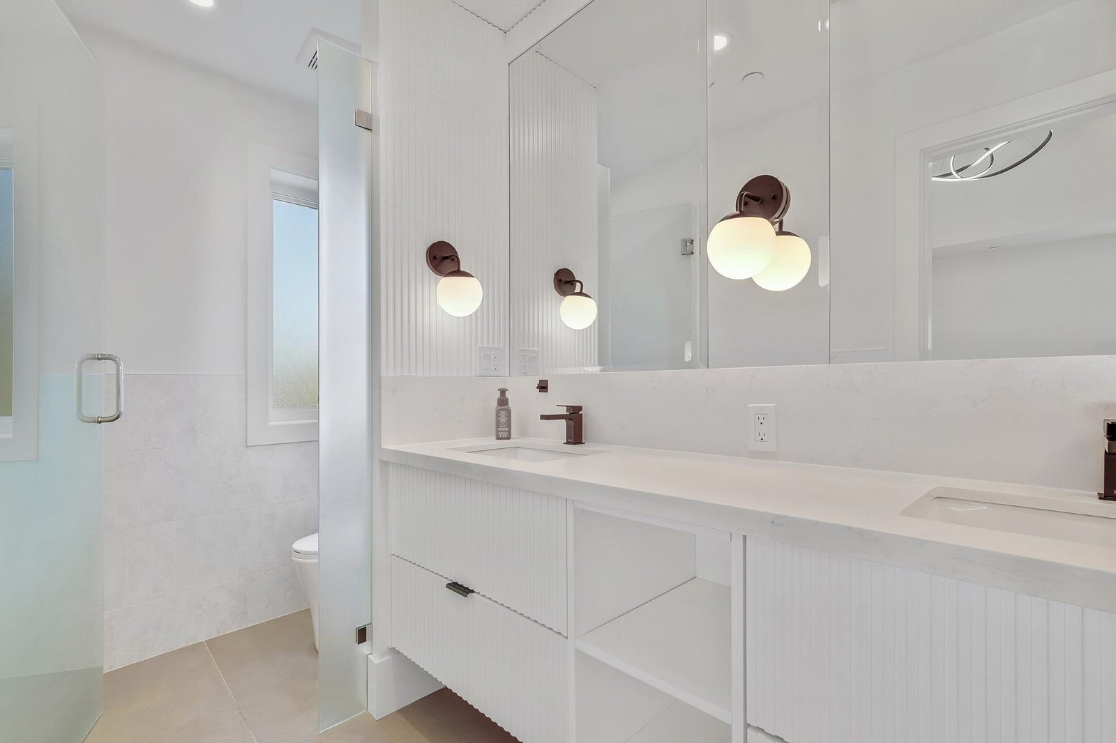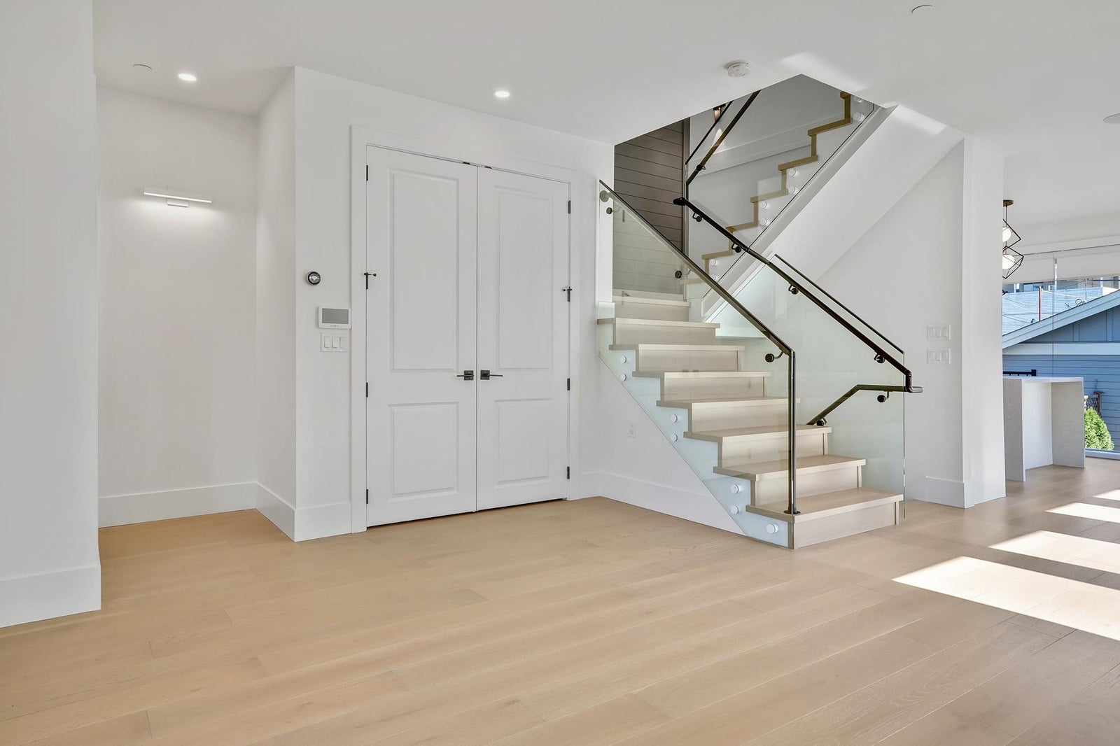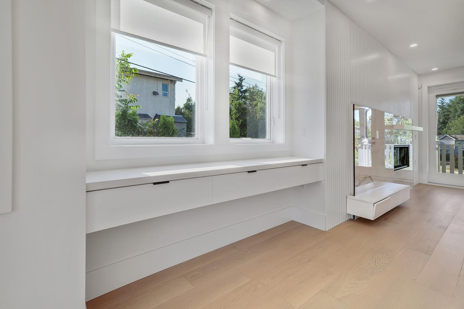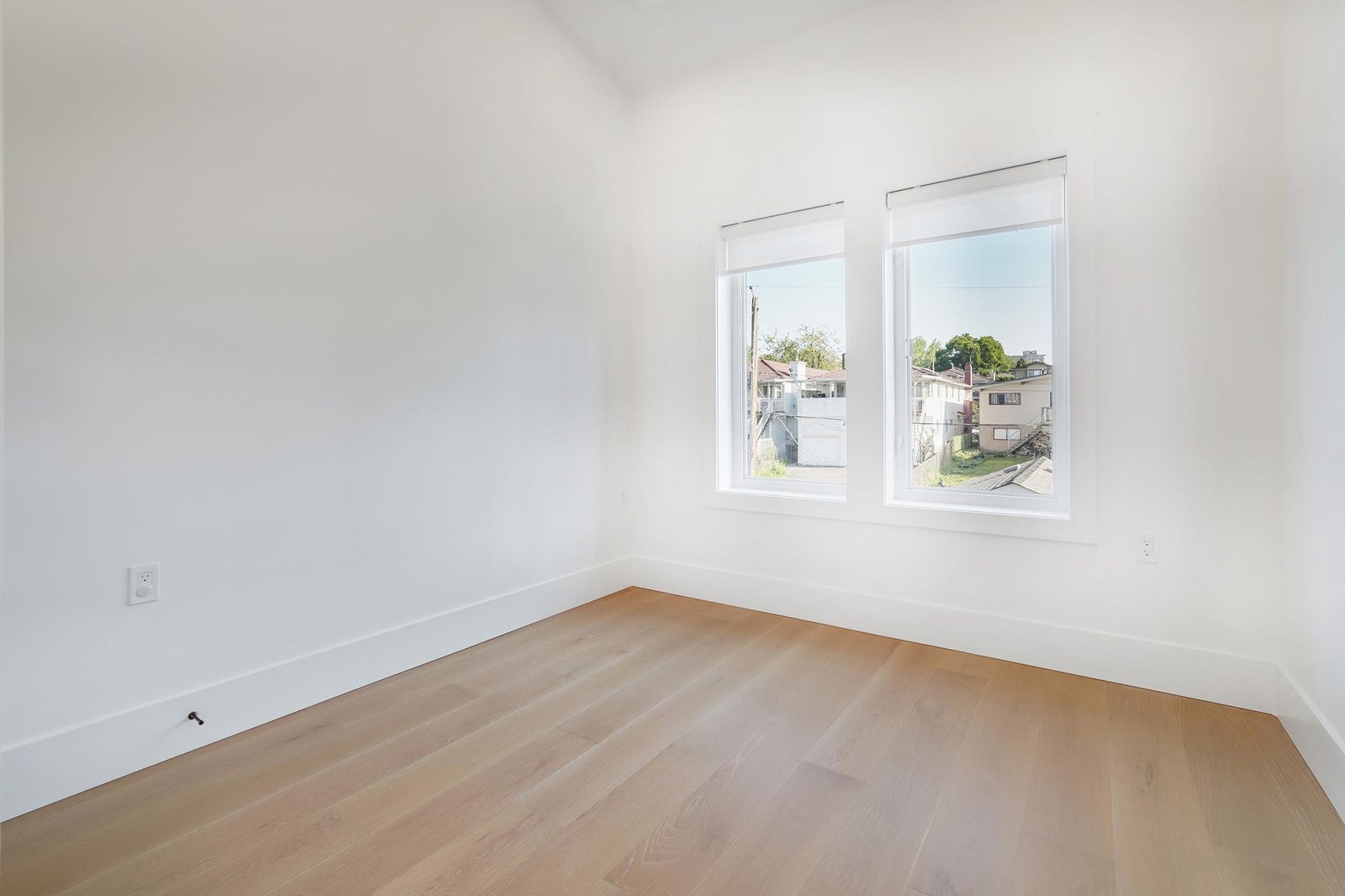 Stunning 1/2 duplex featuring a 1-bedroom legal suite! The main level showcases a open-concept design with a modern kitchen, island, gas range, Miele appliances, and bonus storage. Nano doors extend your living space to a private, covered patio. Expansive windows flood the home with natural light. Upstairs offers 3 bright bedrooms with vaulted ceilings, including a primary with walk-in closet and spa-inspired ensuite. The lower level includes a full suite and a huge crawl space over 600SF for all your storage needs. Enjoy year-round comfort with A/C, HRV, smart home tech, alarm system, and a detached single garage with EV charger. Located in a welcoming neighborhood just minutes from shopping and the heart of Vancouver. Balance of 2-5-10 warranty.
