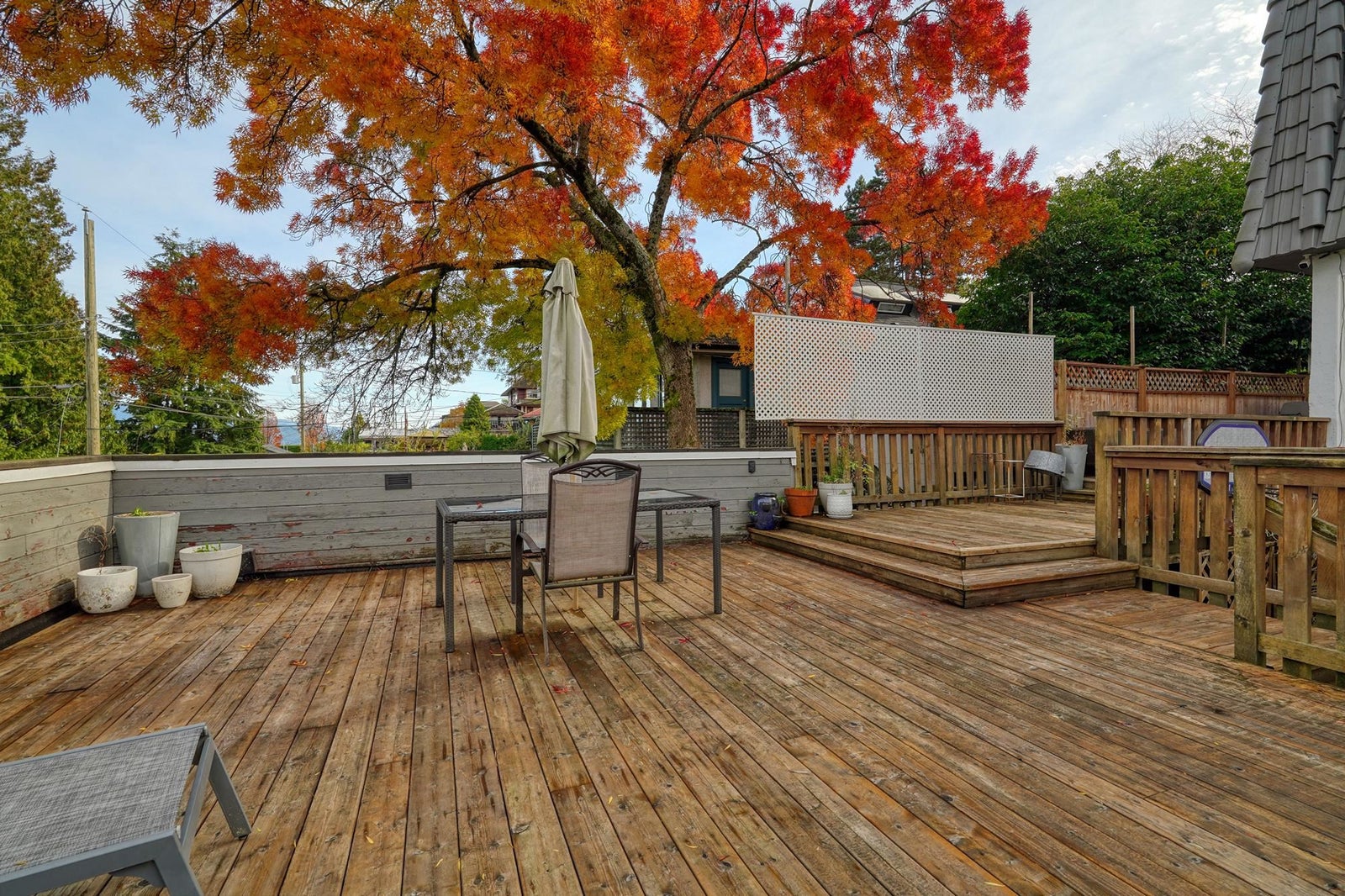 Beautiful Heights home with stunning mountain and water views! Set in a lush garden setting, this spacious character residence blends timeless charm with modern updates. Extensively renovated over the years, it features 5 bedrooms and 3 bathrooms. The formal living room offers coved ceilings, inlaid oak floors, and a classic fireplace. The kitchen has a large centre island, granite counters, Sub-Zero fridge, gas range, skylights, and French doors opening to an oversized deck overlooking Burrard Inlet. Upstairs includes 4 bedrooms, a spacious primary with gas fireplace and updated ensuite. Enjoy a large recreation room downstairs with large laundry room. Detached double garage with EV Charger. OPEN: Sat/Sun Nov 8/9 2:00-4:00PM