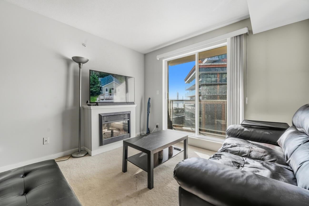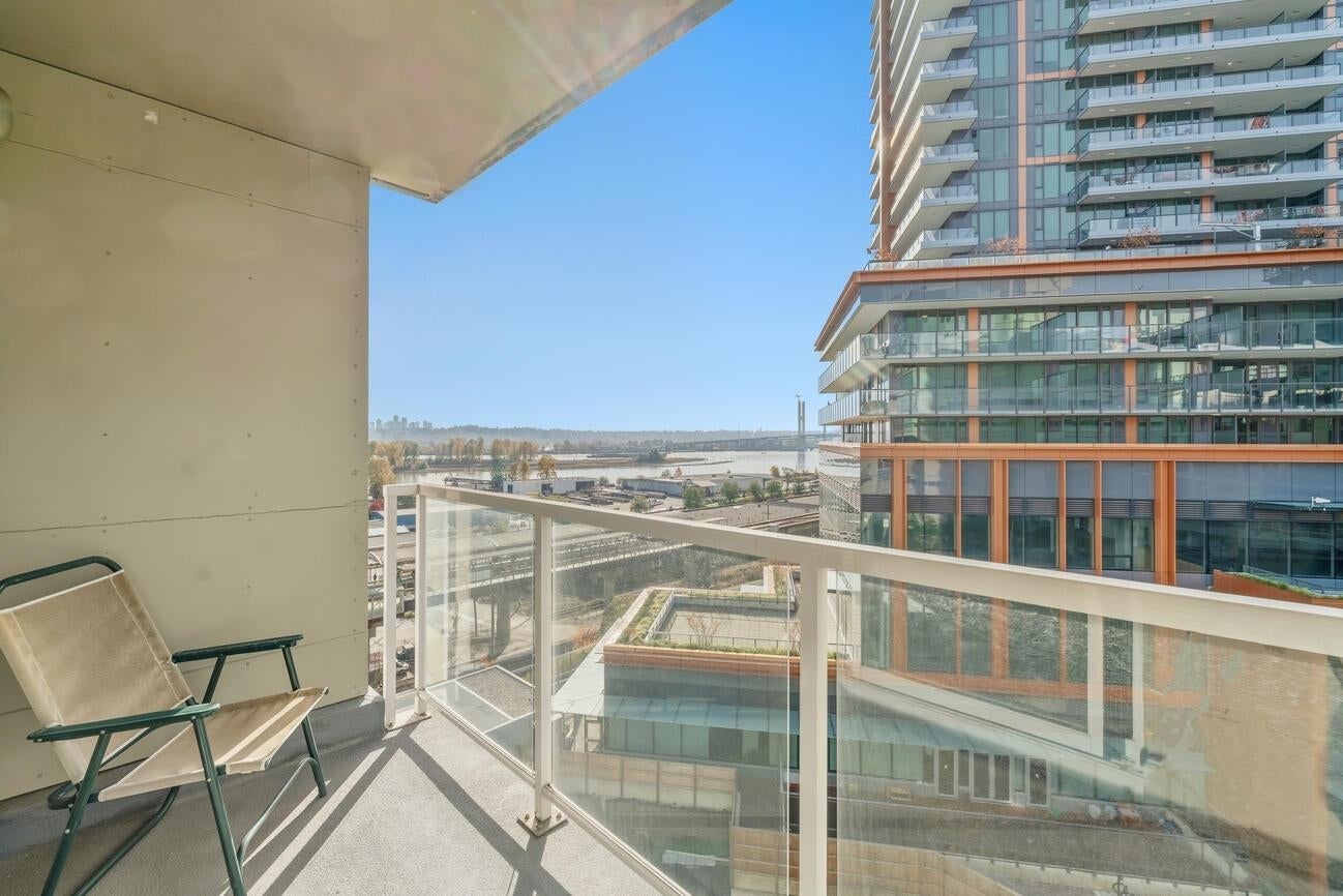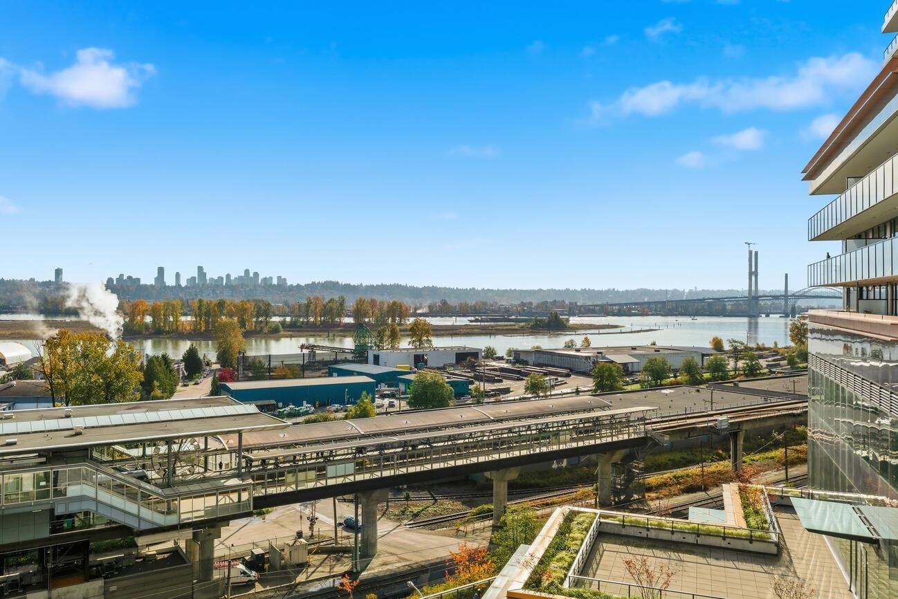 Affordable and convenient living with spectacular views! This junior 1-bedroom home offers sweeping vistas of the Fraser River and New Westminster waterfront. Enjoy direct SkyTrain access via the connected skyway, and a well-designed, functional layout. The open-concept kitchen features space for bar seating and a dining table, flowing seamlessly into the living area with an electric fireplace that adds warmth and ambiance—all framed by an impressive view.