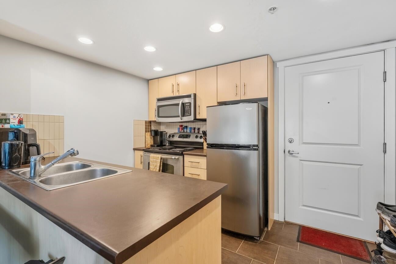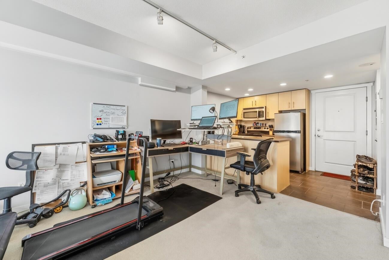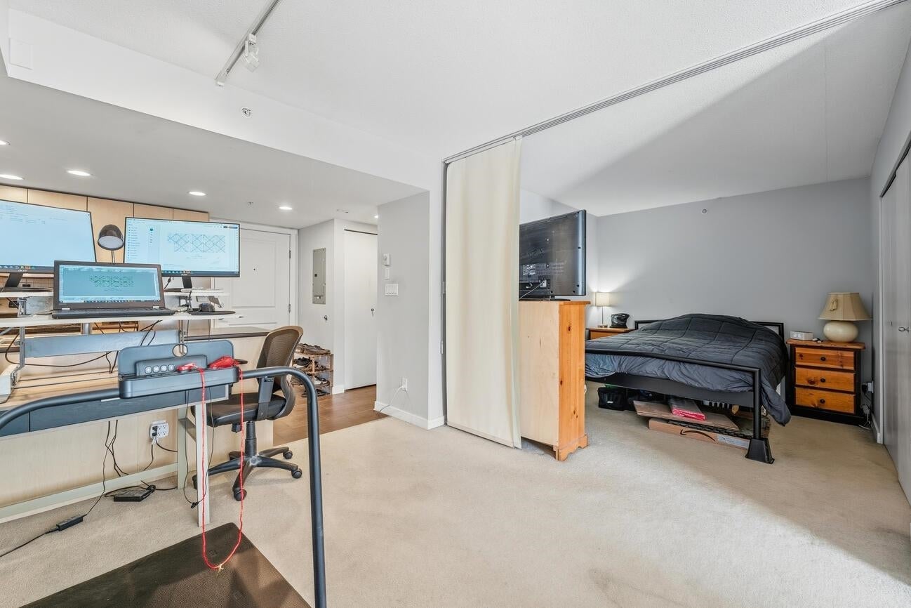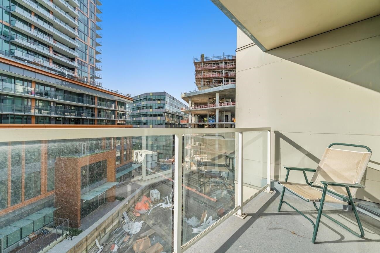 Affordable and convenient living with spectacular views! This junior 1-bedroom home offers sweeping vistas of the Fraser River and New Westminster waterfront. Enjoy direct SkyTrain access via the connected skyway, and a well-designed, functional layout. The open-concept kitchen features space for bar seating and a dining table, flowing seamlessly into the living area with an electric fireplace that adds warmth and ambiance—all framed by an impressive view.