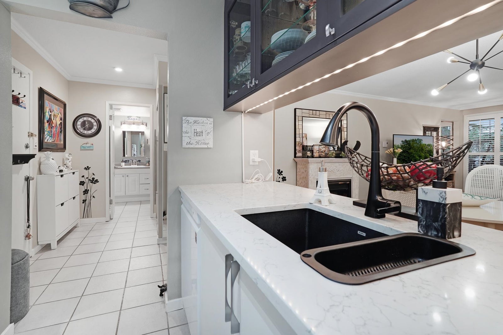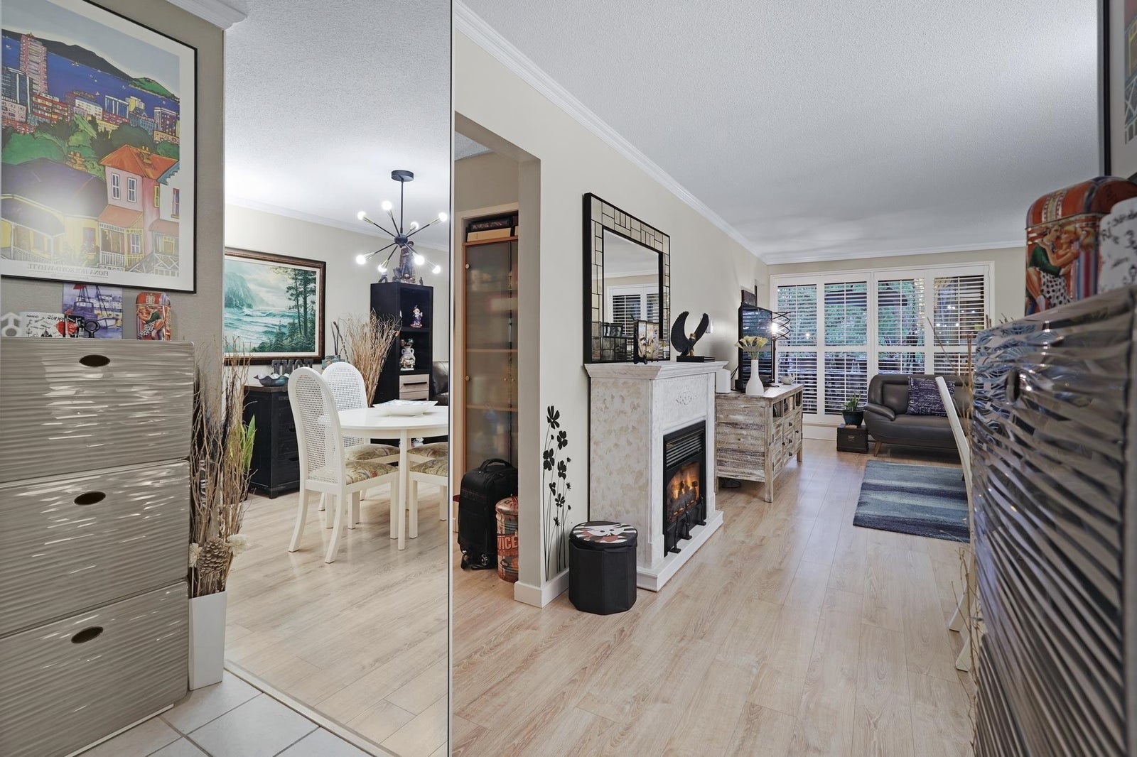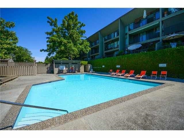 Bright and beautifully updated 1 bedroom & den (possibly a small 2nd bedroom), 1 bathroom home offering comfort, privacy, and excellent amenities. The renovated kitchen features an opened wall, modern cabinetry, updated counters, and new appliances. The bathroom was updated with a sleek stand-up shower and new vanity. All lighting fixtures have been replaced, along with windows and a door to balcony. Enjoy a private, treed outlook from the balcony. Includes two parking spaces (one covered, one uncovered) and an extra-large storage locker. Shared laundry is conveniently located just across the hall. Well-maintained building with outdoor pool, gym, sauna, social room, and workshop. Great safe area with park & school closeby.