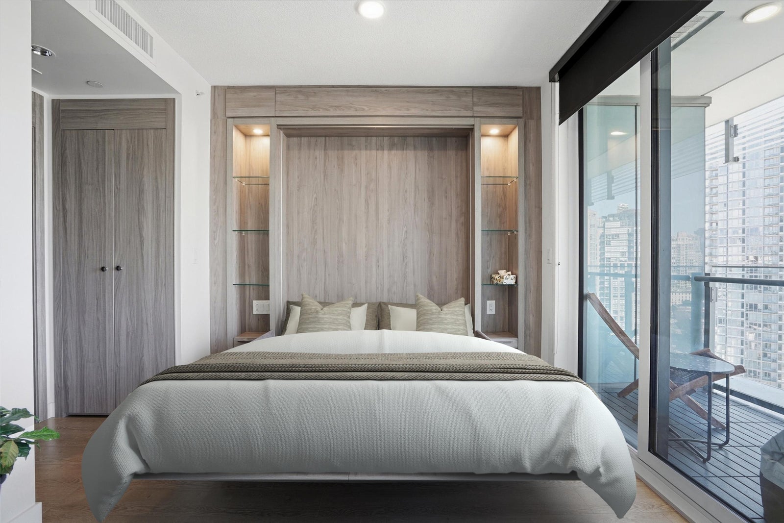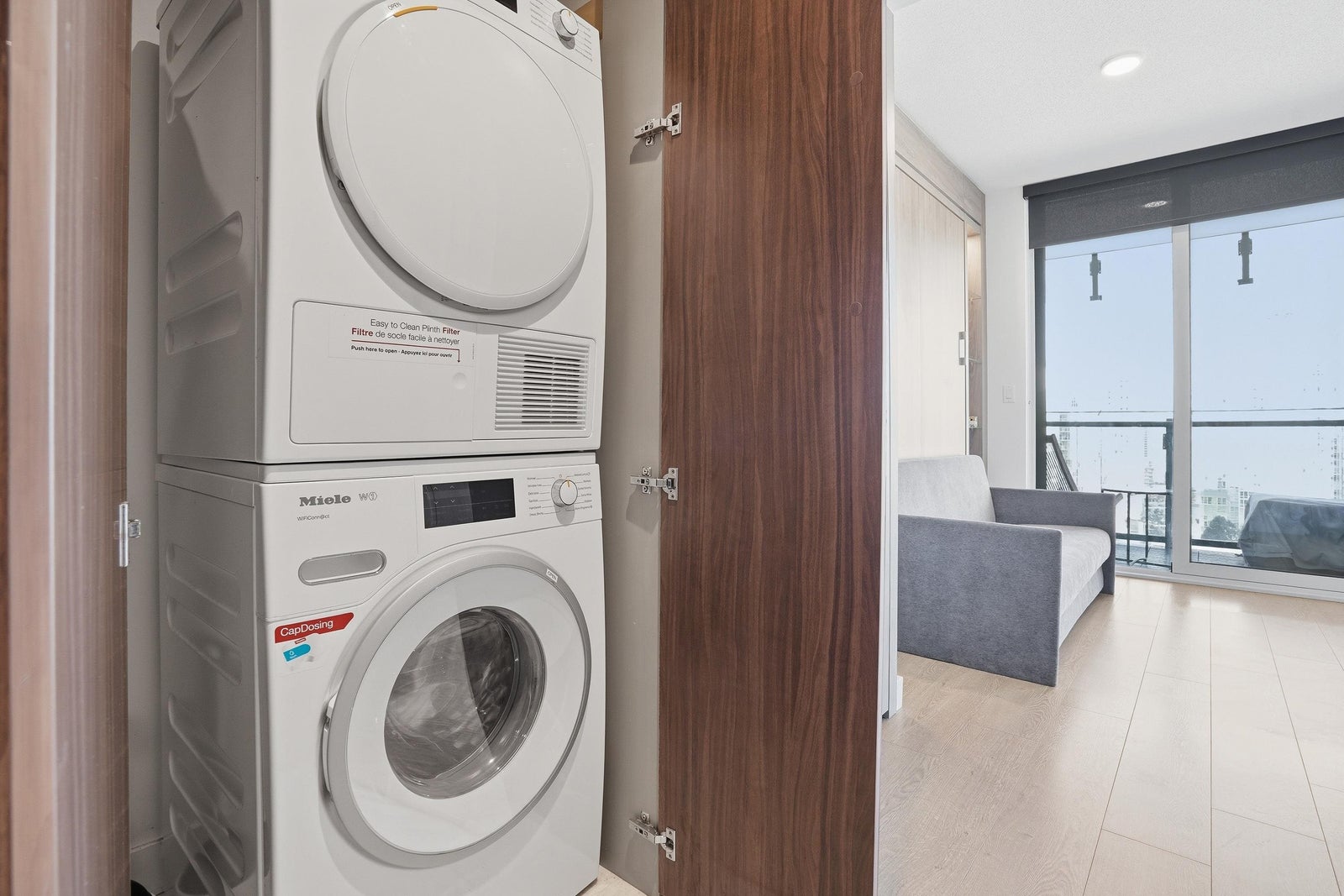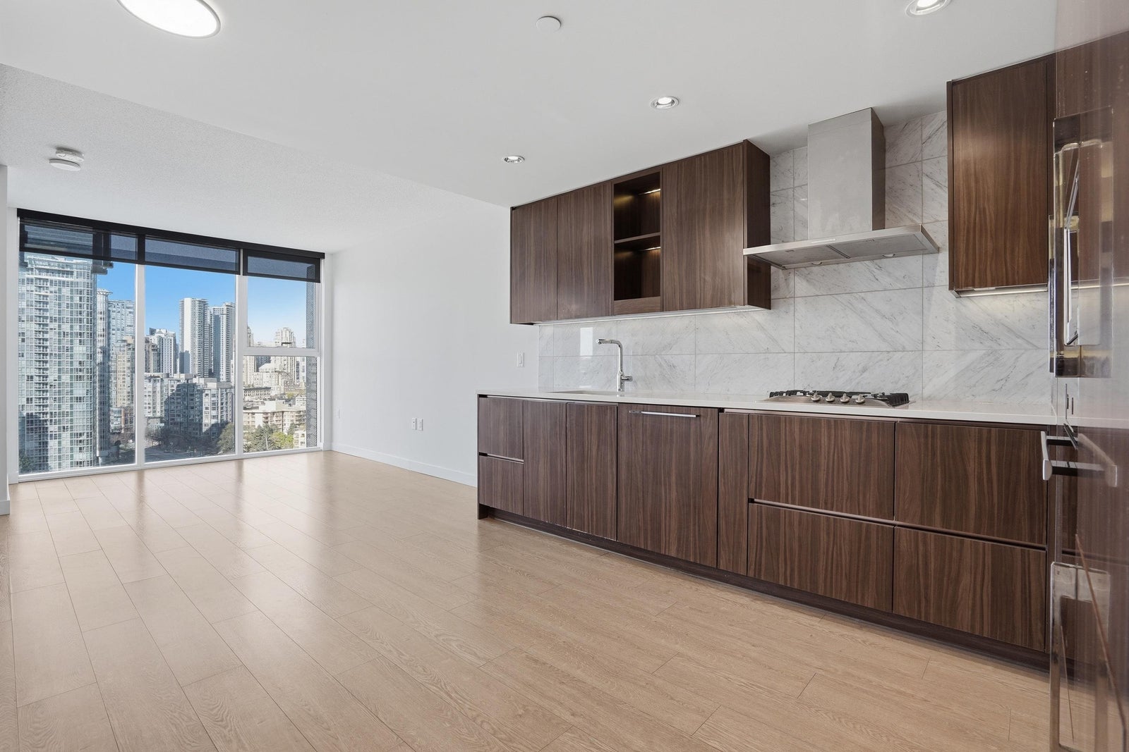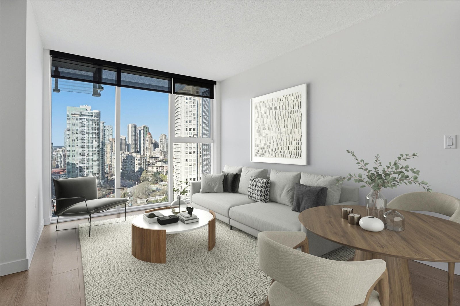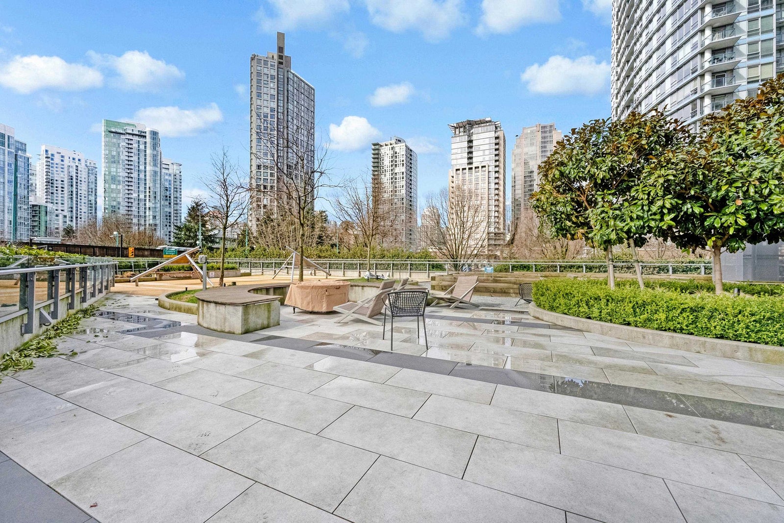 Experience iconic living at The Arc! This bright and well-appointed 18th-floor home offers stunning city and partial water views through floor-to-ceiling windows. Efficient open layout with modern finishes, A/C, and high-end appliances. Bedroom has sliding frosted glass doors and built in couch-murphy bed. Enjoy Concord’s signature Sky Club featuring a glass-bottom pool, full fitness centre, sauna, and lounge. Prime False Creek location steps to Seawall, BC Place, transit, and dining. Perfect for end-users or investors seeking a landmark address with strong rental appeal.